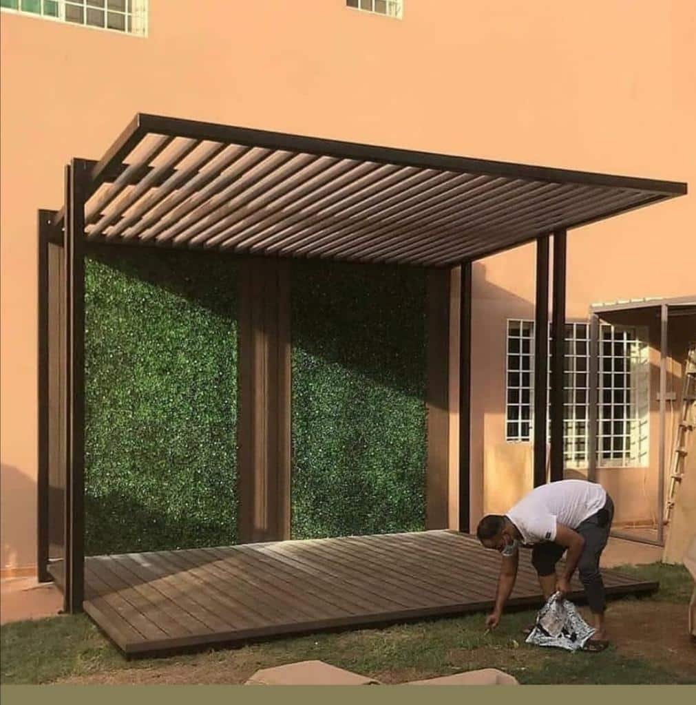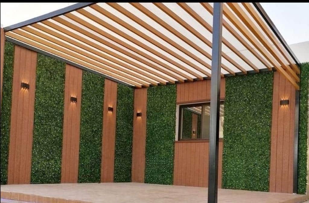 مظلات حديدية على شكل خشب يبدأ تُركب مظلات الحدائق عادةً في الخارج، مثل فناء المنازل، وجلسات الأسطح، ومداخل الفلل، والممرات، حيث تضيف لمسة جمالية لا تُضاهى بتصاميمها الرائعة. كما ان مظلات الحدائق الخشبية، فهي مصنوعة من الخشب الطبيعي والصناعي، وتعتبر من أغلى أنواع مظلات الحدائق نظرًا لجمال تصميمها الطبيعي وفخامتها، مما يضيف للمكان مظهرًا رائعًا.