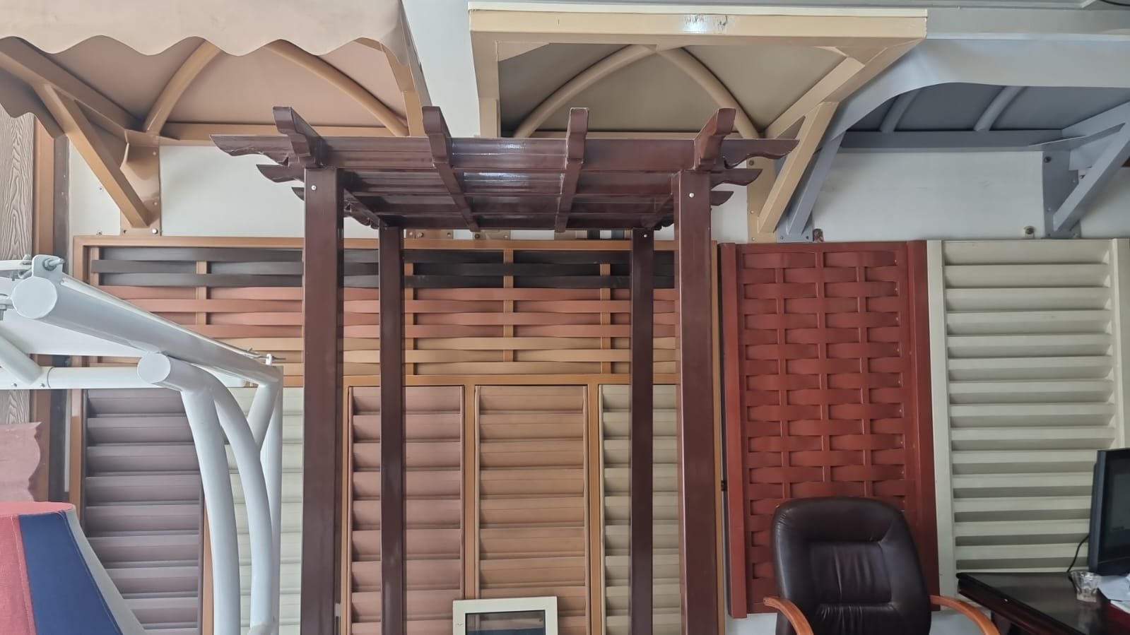 - الخشب: يضفي مظهراً طبيعياً وجمالياً، ويستخدم في صناعة بعض أنواع المظلات والسواتر، ويتطلب معالجة خاصة لحمايته من التلف.