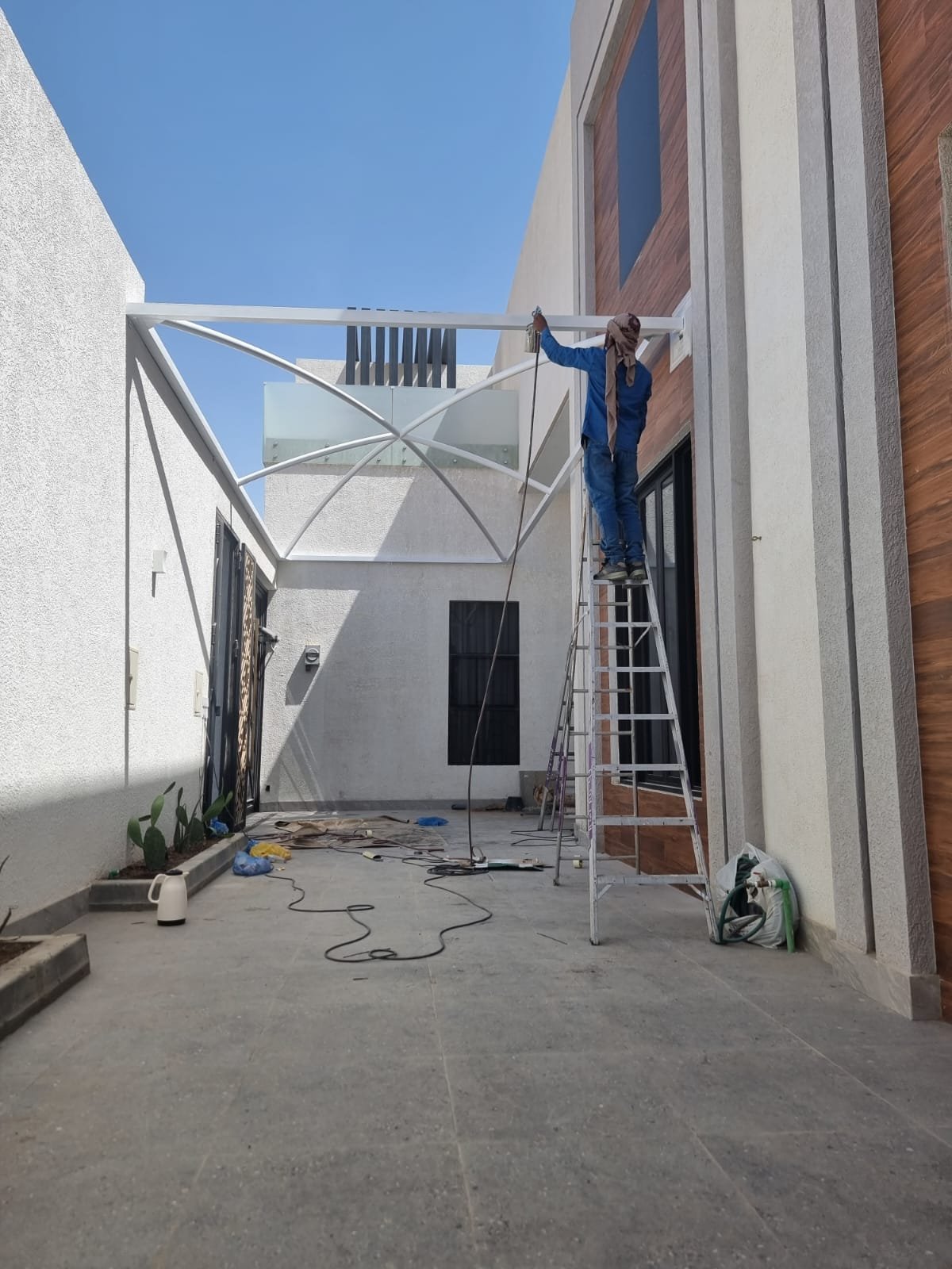 مظلات السيارات: لحماية المركبات من أشعة الشمس الحارقة والأمطار والأتربة، وتتوفر بتصاميم متعددة مثل المظلات المعلقة، والمظلات ذات الأعمدة، والمظلات المتحركة.