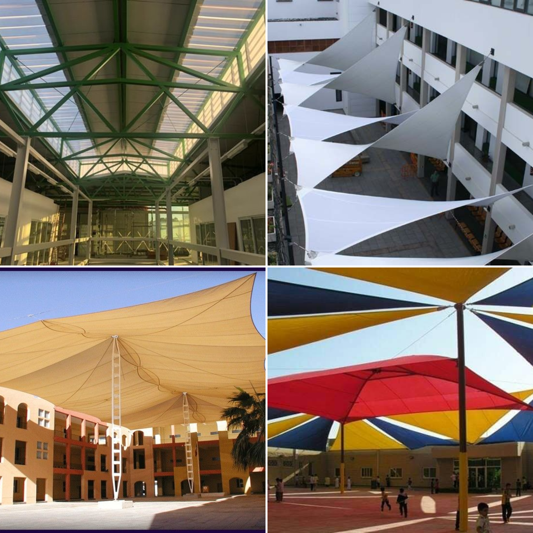 - الخدمة: مظلات مواقف طلاب 200 م²